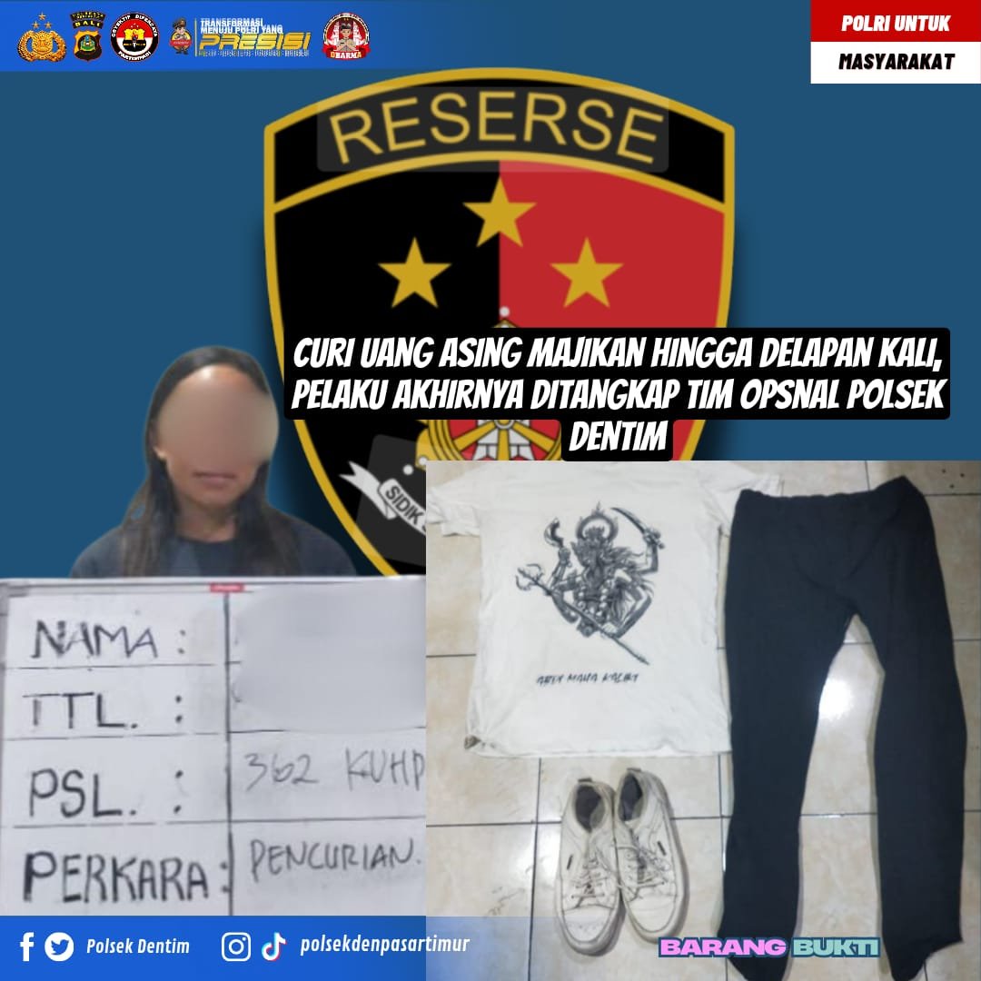 Pelaku, seorang perempuan berinisial NMM (40) asal Gianyar, diamankan oleh petugas setelah diduga kuat mencuri uang milik majikannya berupa mata uang Euro senilai total sekitar Rp 29 juta rupiah.
