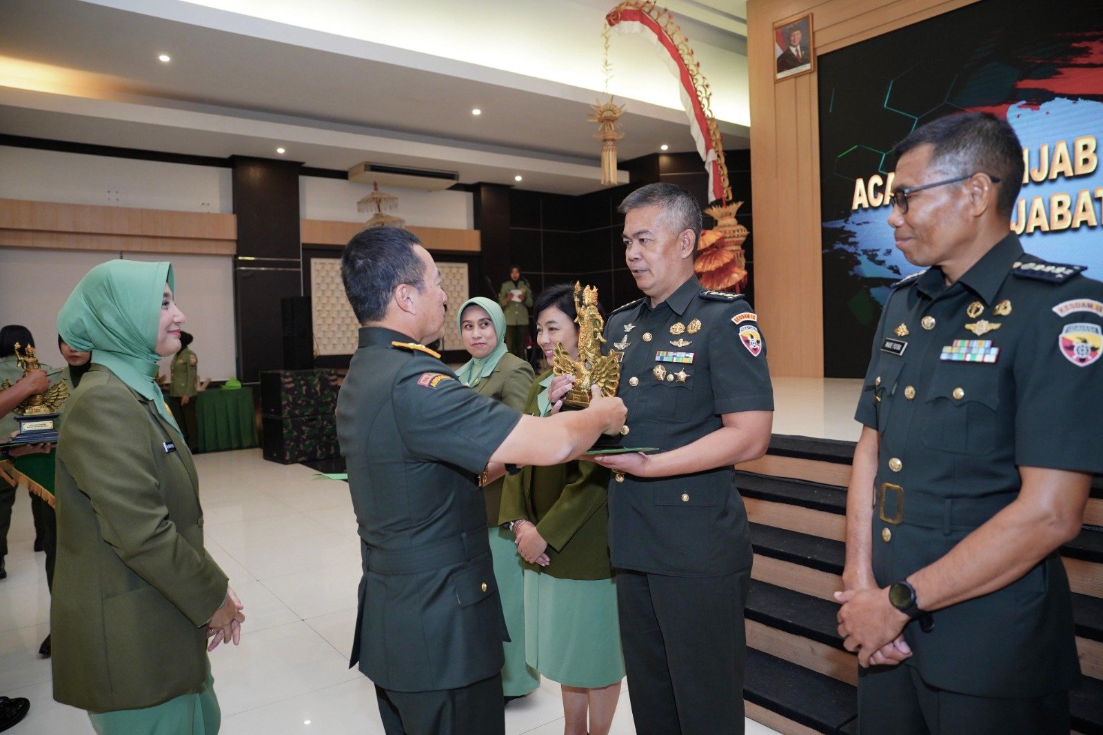 Pejabat yang menerima tugas wewenang dan tanggung jawab jabatan adalah Kasansidam IX/Udayana Letkol Inf Ketut Sudiarta, S.H., M.H., yang sebelumnya menjabat Kabagmincad Babinminvetcaddam IX/Udayana. Sementara itu, tradisi penerimaan pejabat Kodam IX/Udayana antara lain Kabagdik Rindam IX/Udayana Kolonel Inf Tentrem Basuki, yang sebelumnya menjabat Kasiops Korem 072/Pamungkas Kodam IV/Diponegoro, serta Kasiter Korem 163/Wira Satya Kolonel Inf Didin Nasrudin Darsono, S.Sos., M.Han., yang sebelumnya menjabat Dandim 0830/Surabaya Utara Korem 084/BJ Kodam V/Brawijaya.