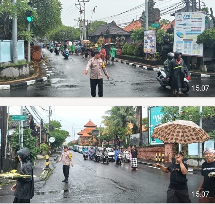 Selama prosesi berlangsung, Bhabinkamtibmas bersama Pecalang melaksanakan pengaturan arus lalu lintas dan pengamanan jalur yang dilalui iring-iringan guna mencegah kemacetan serta memastikan kegiatan berjalan tertib dan lancar. Kehadiran aparat di tengah masyarakat juga merupakan wujud pelayanan Polri dalam mendukung pelaksanaan tradisi dan adat istiadat masyarakat Bali.